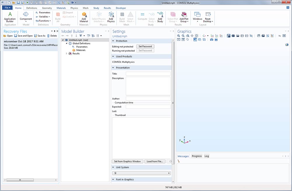 By default, the COMSOL Multiphysics® software stores recovery files while your model is solving. If, for whatever reason, the software terminates during this time, for instance due to a reboot of the computer due to a power outage, these files can be used to recover the partially solved model. New in COMSOL Multiphysics® version 5.3a, the recovery files feature is much more accessible and user friendly. The recovery files are now displayed in a separate window when launching the software, with an improved user interface that lets you immediately decide which files to save, delete, or open.