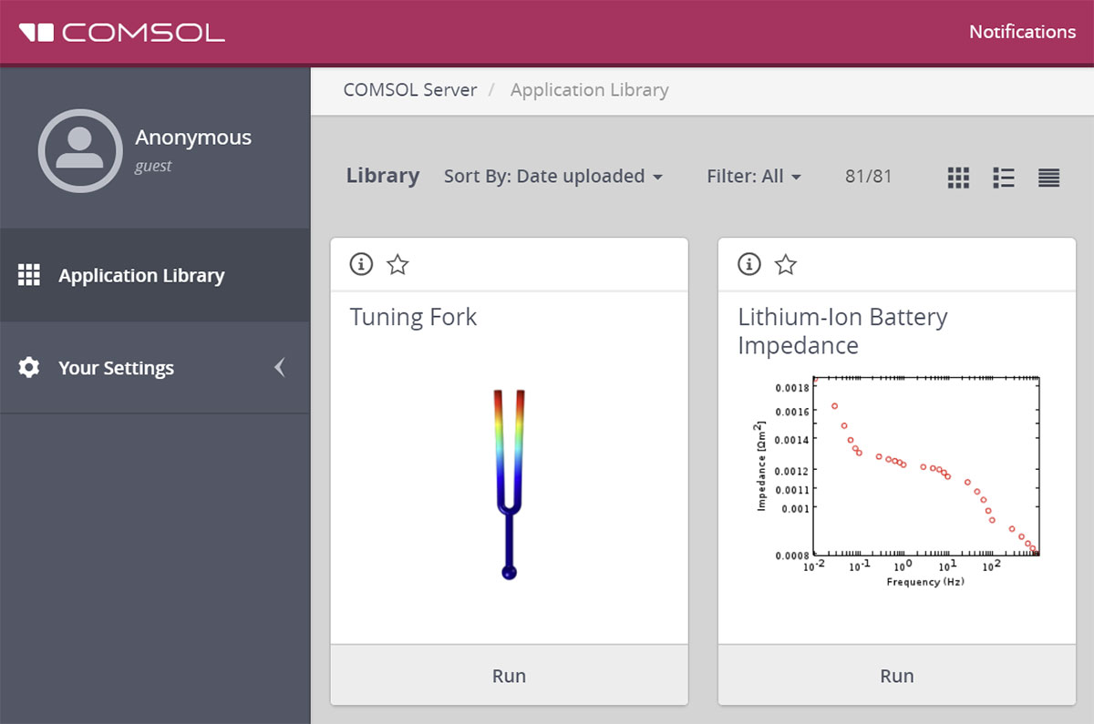 An example of an anonymous COMSOL Server user that was logged in automatically.