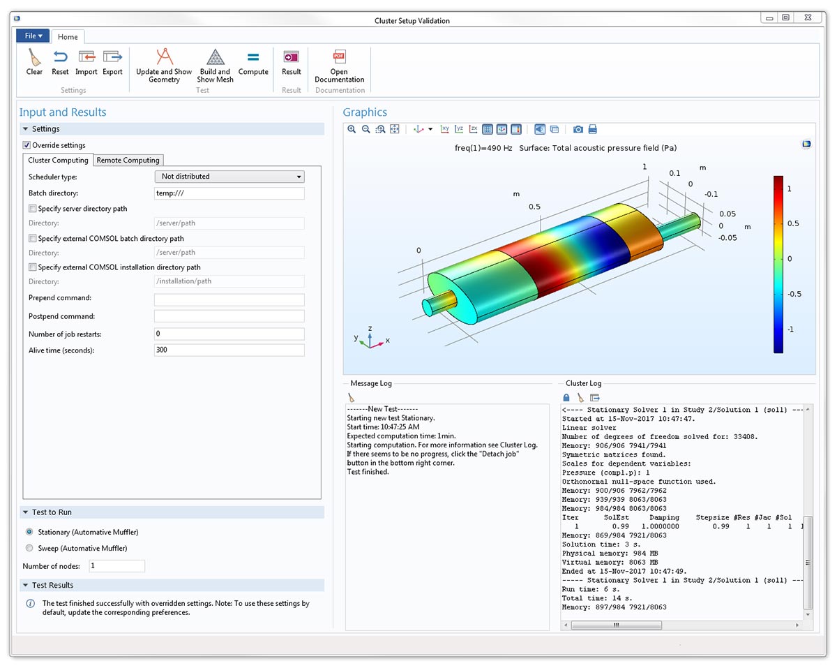 A COMSOL app for validating a cluster setup, new with COMSOL Multiphysics version 5.3a.