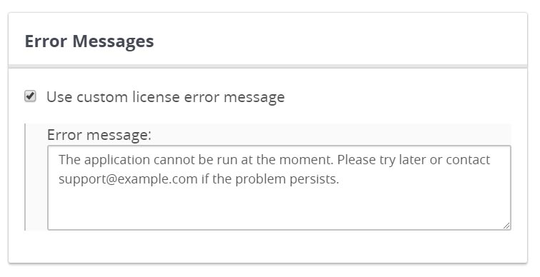Custom License Error Message