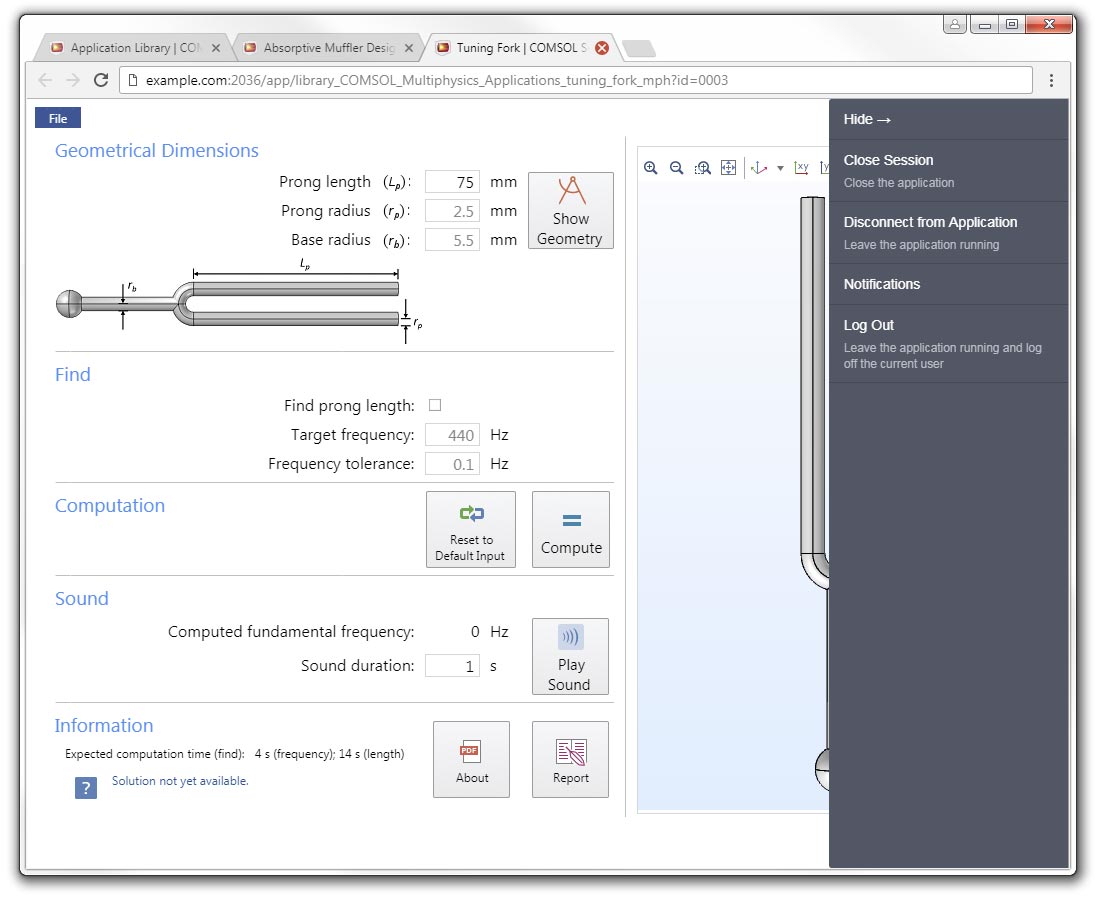 A demonstration of how COMSOL Server handles multiple browser tabs.